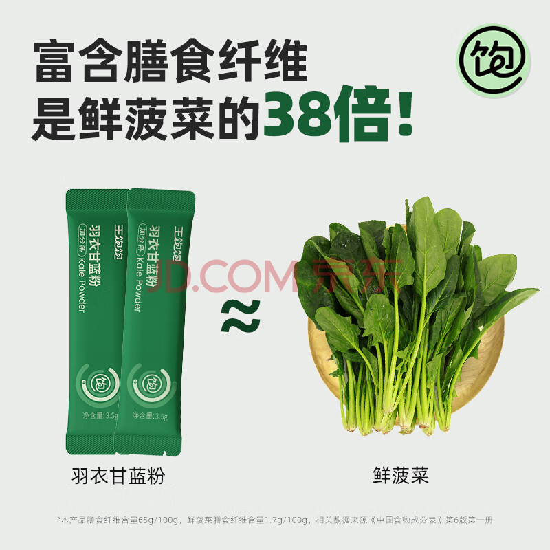 商品相册:王饱饱 羽衣甘蓝粉3.5g*30条高膳食纤维冲饮早餐代餐粉低卡果蔬粉第
