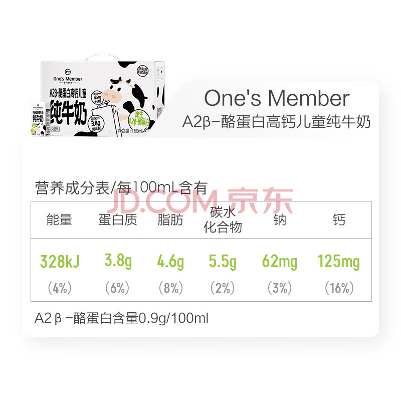 商品相册:1号会员店 A2高钙儿童牛奶 16盒 3.8g蛋白 礼盒装【160ml不浪费】第