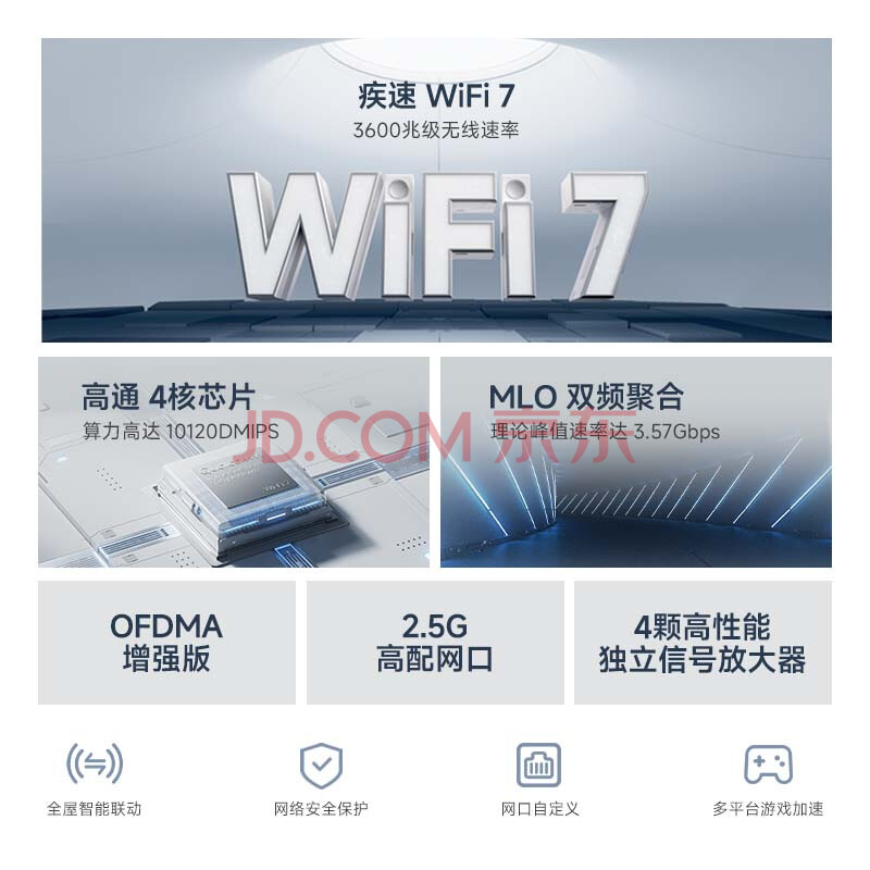 商品相册:小米(MI)路由器BE3600 2.5G【小米手机上网搭档】3600兆级 WiFi7 4核高通处理器 2.5G网口 智能家用路由第1张/共8