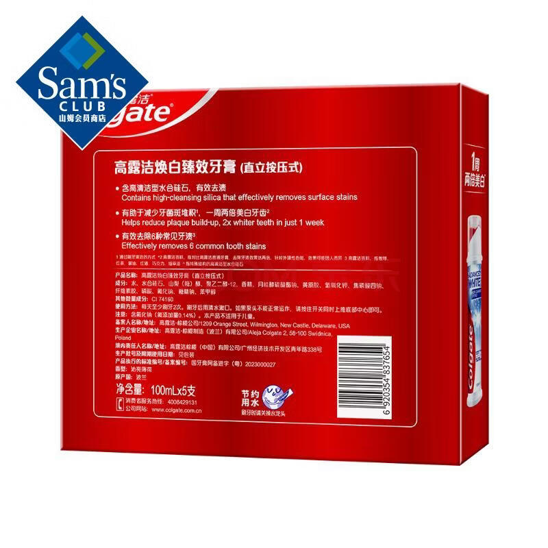 商品相册:波兰进口 焕白臻效牙膏 (直立按压式) 100mL*5 100ml*5支第