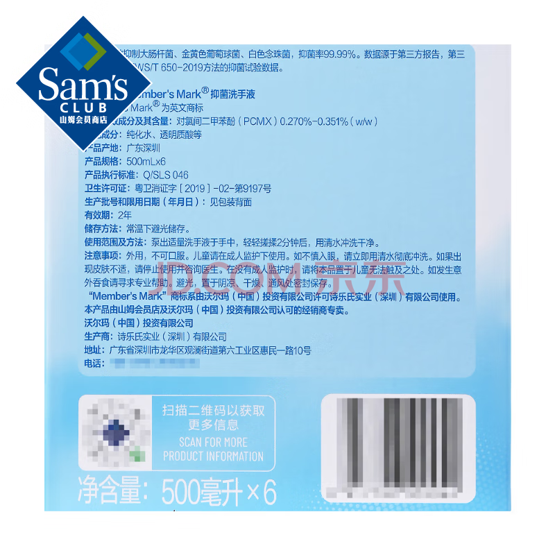 商品相册:Member's Mark 抑菌洗手液 500ml*6 500ml*6瓶第