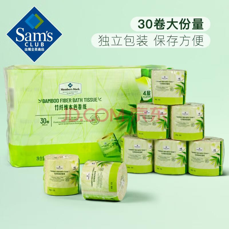 商品相册:Member's Mark 竹纤维本色卷纸 155克x30卷 4层 155g/卷*30卷第
