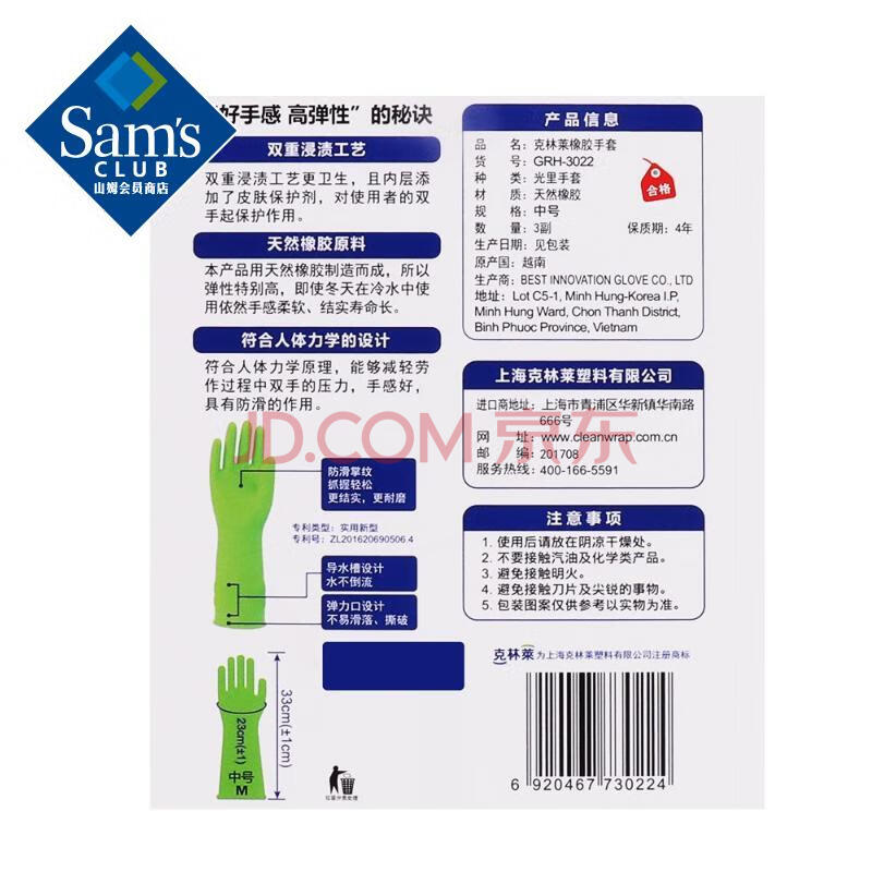 商品相册:越南进口 橡胶手套 中号 3副装 浅绿色 3件第