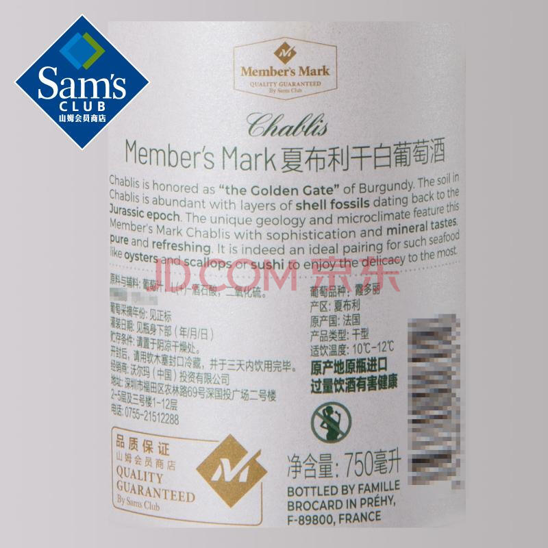 商品相册:Member's Mark 法国进口 夏布利干白葡萄酒 750毫升 750mL 1瓶第