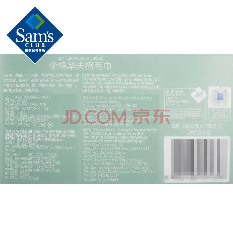 商品相册:Member's Mark 全棉华夫格毛巾 10条装 五色10条装第