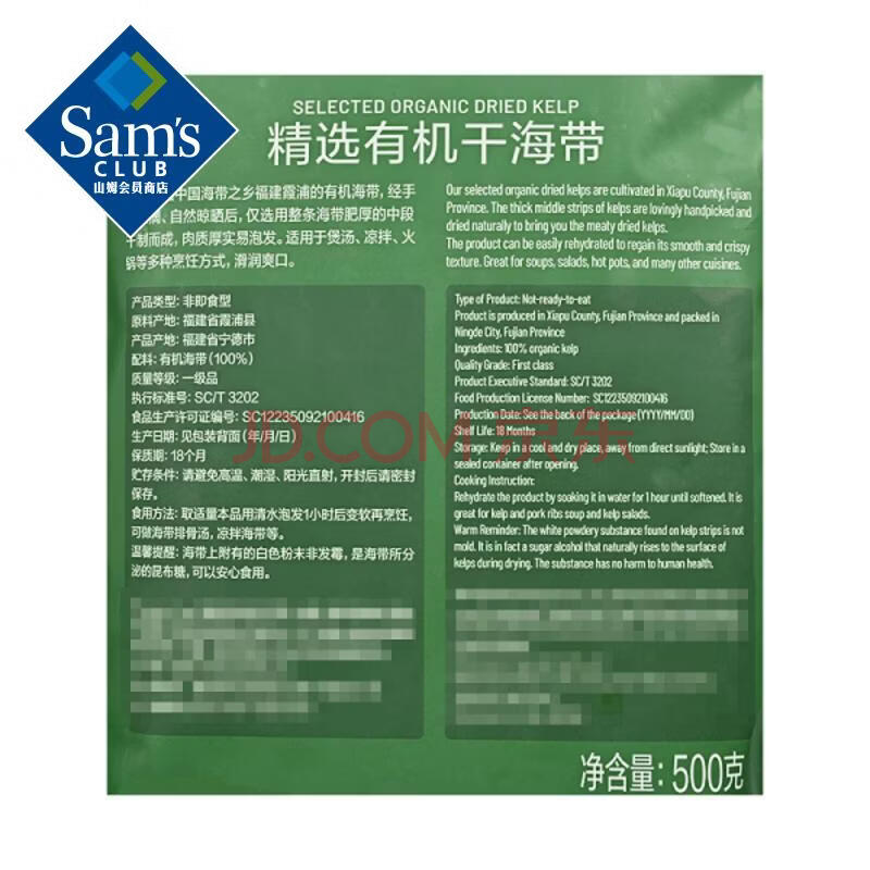 商品相册:Member's Mark 精选有机干海带 500g 500g第