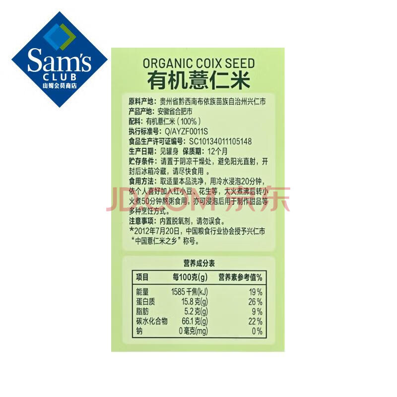 商品相册:Member's Mark 有机薏仁米 2kg 2kg第