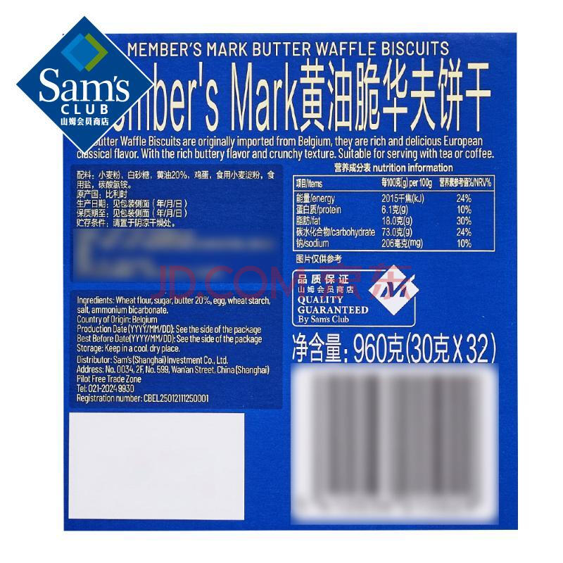 商品相册:Member's Mark 比利时进口 黄油脆华夫饼干 960克(30克*32) 960g第1张/共5
