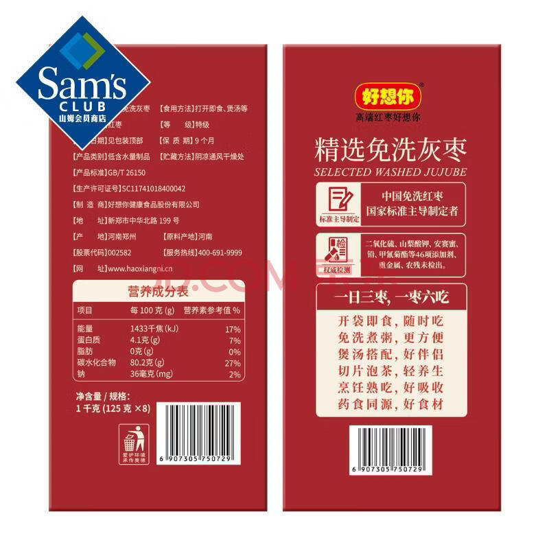 商品相册:精选免洗灰枣 1千克(125克*8) 1千克(125克*8)第