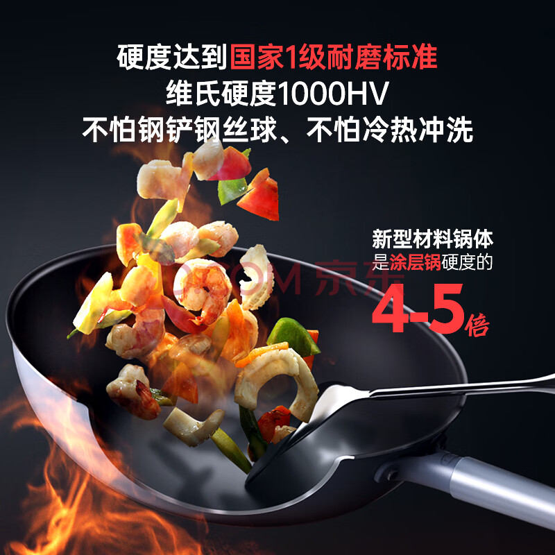 商品相册:三禾无涂层不粘炒锅炒菜锅无油烟钛合金钛锅具30cm天穹黑配钢铲LC30S1第
