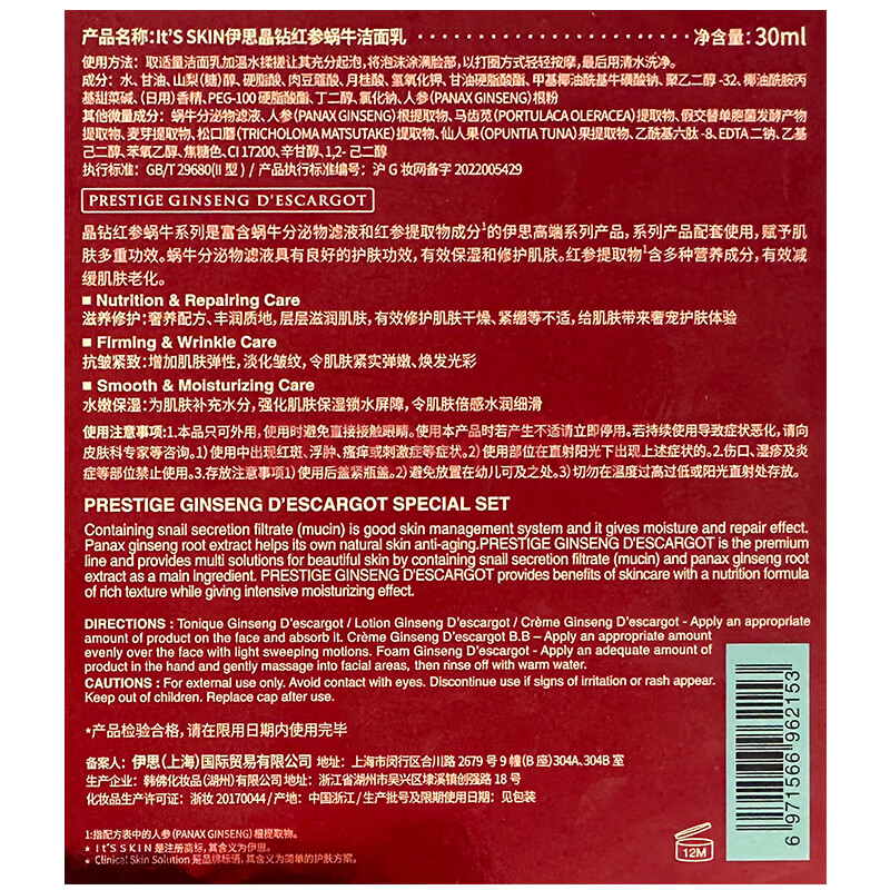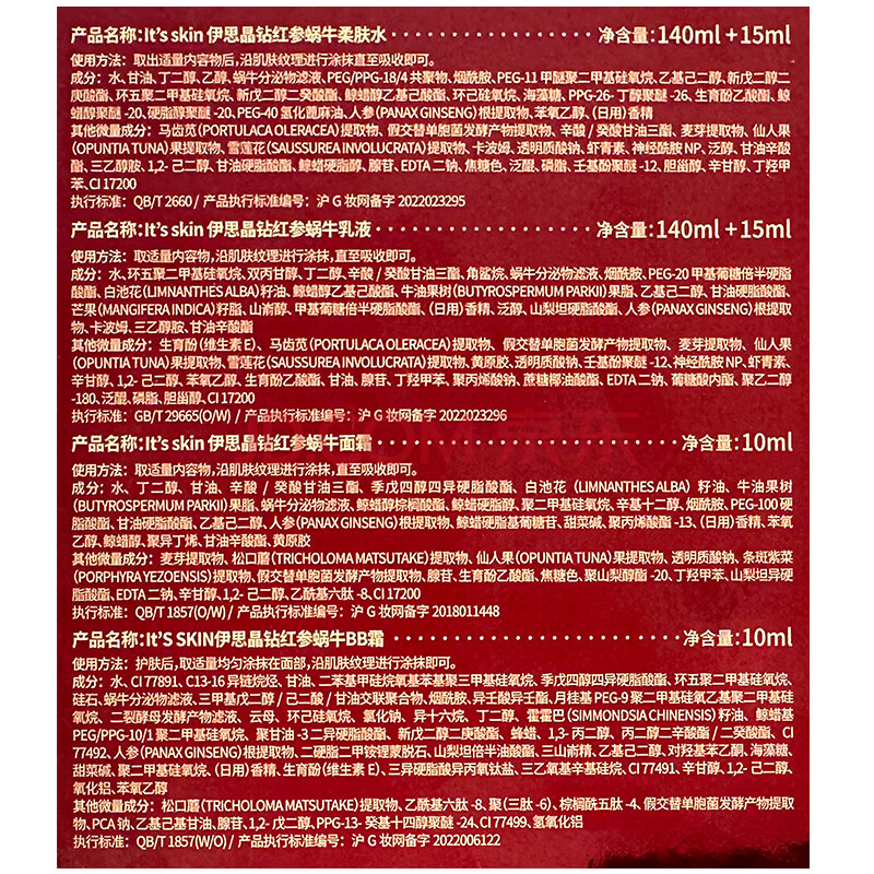 商品相册:伊思(It’s skin)红参蜗牛水乳7件套装 抗皱淡化细纹提拉紧致护肤品礼盒生日礼物女第