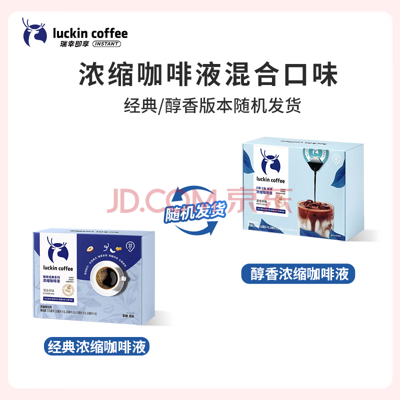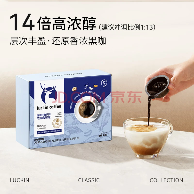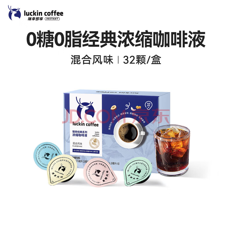 商品相册:瑞幸咖啡0糖0脂经典浓缩咖啡液 大容量混合风味 美式黑咖啡18ml*32杯第1张/共7