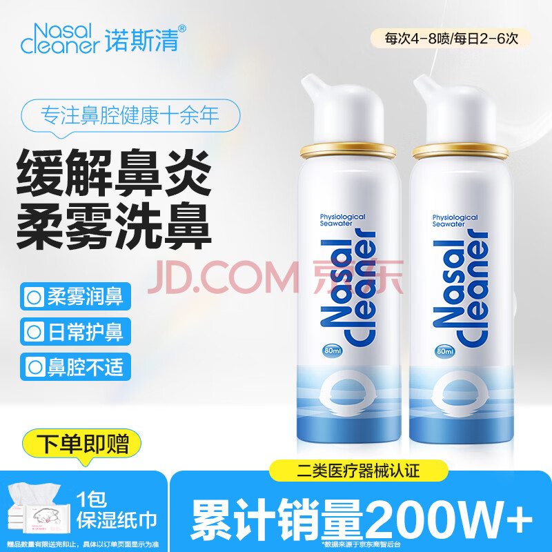 商品相册:诺斯清鼻喷生理盐水鼻腔清洗海盐水喷鼻喷雾成人装80ml*2第