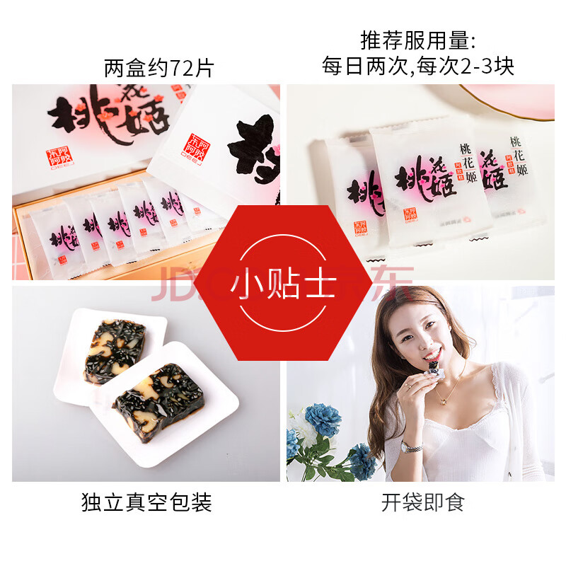 商品相册:东阿阿胶桃花姬阿胶糕180g*2礼盒装即食送妈妈礼物送长辈女营养品滋养好礼第