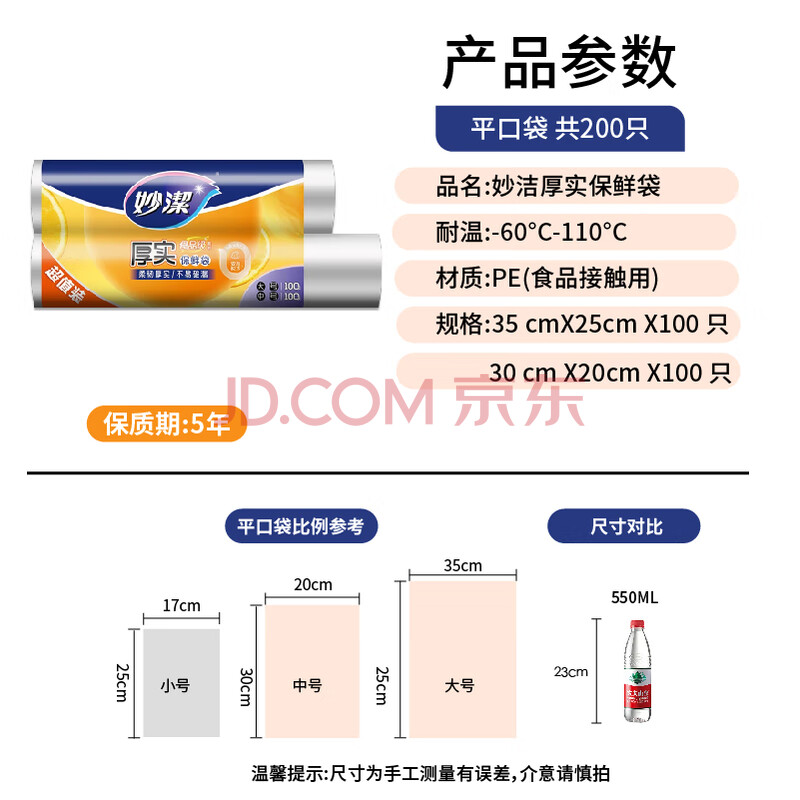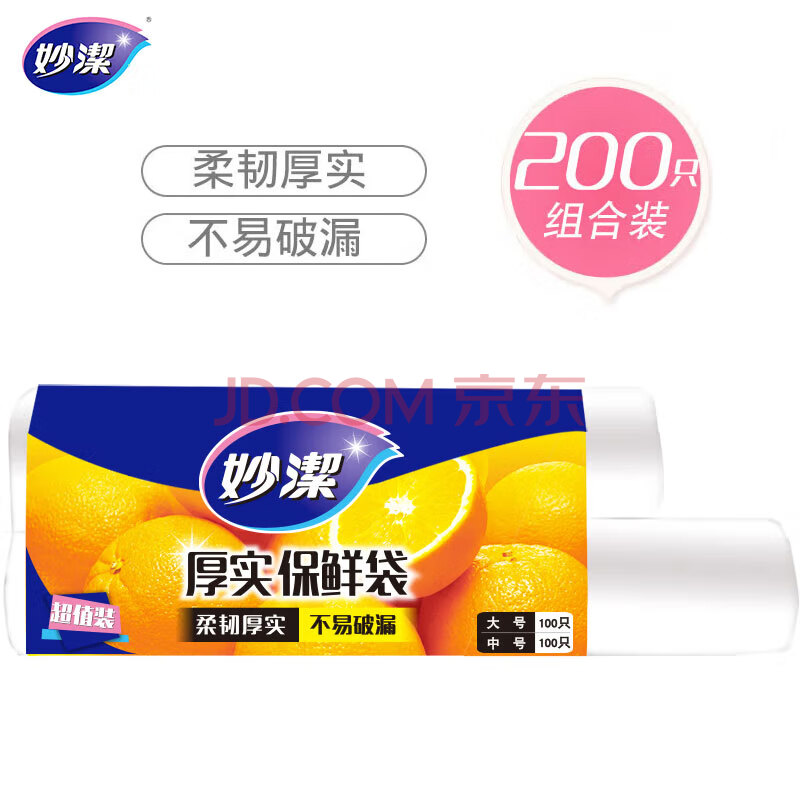 商品相册:妙洁保鲜袋组合装大号中号各100只共200只 加厚实食品袋子厨房超市第1张/共9
