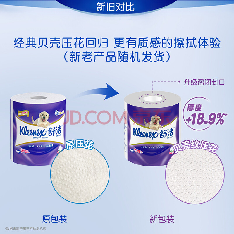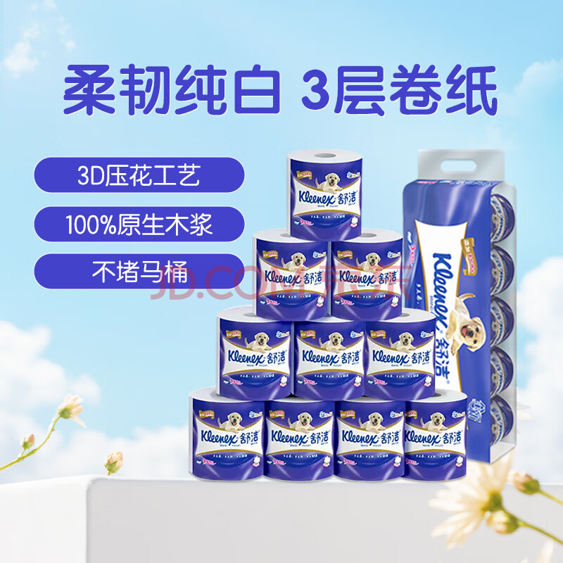 商品相册:舒洁(Kleenex)舒洁卫生纸柔韧纯白印花有芯卷纸3层210节*10卷纸巾厕纸纸巾第