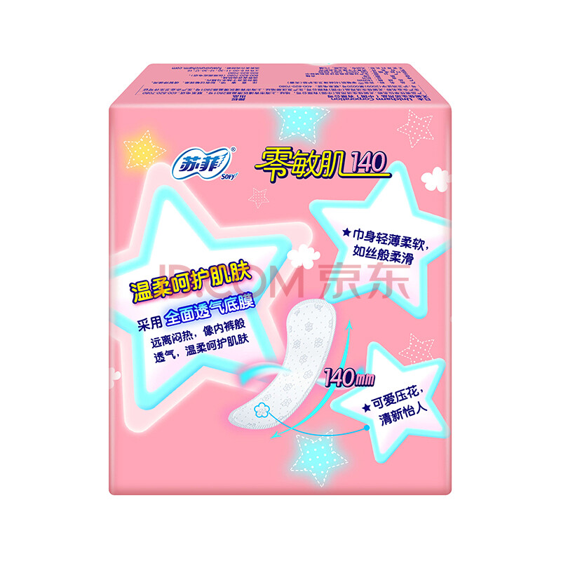 商品相册:苏菲零敏肌超薄透气无香型护垫迷你卫生巾14cm80片丝薄棉柔姨妈巾第
