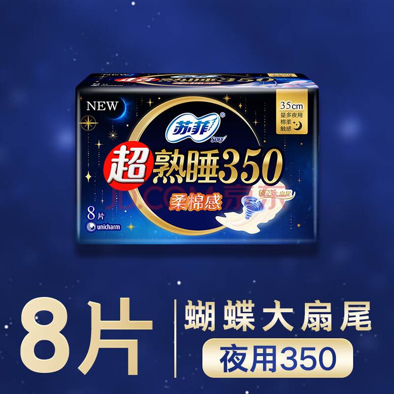 商品相册:苏菲超熟睡柔棉感夜用卫生巾35cm8片超长扇尾量多姨妈巾自营官方旗舰第