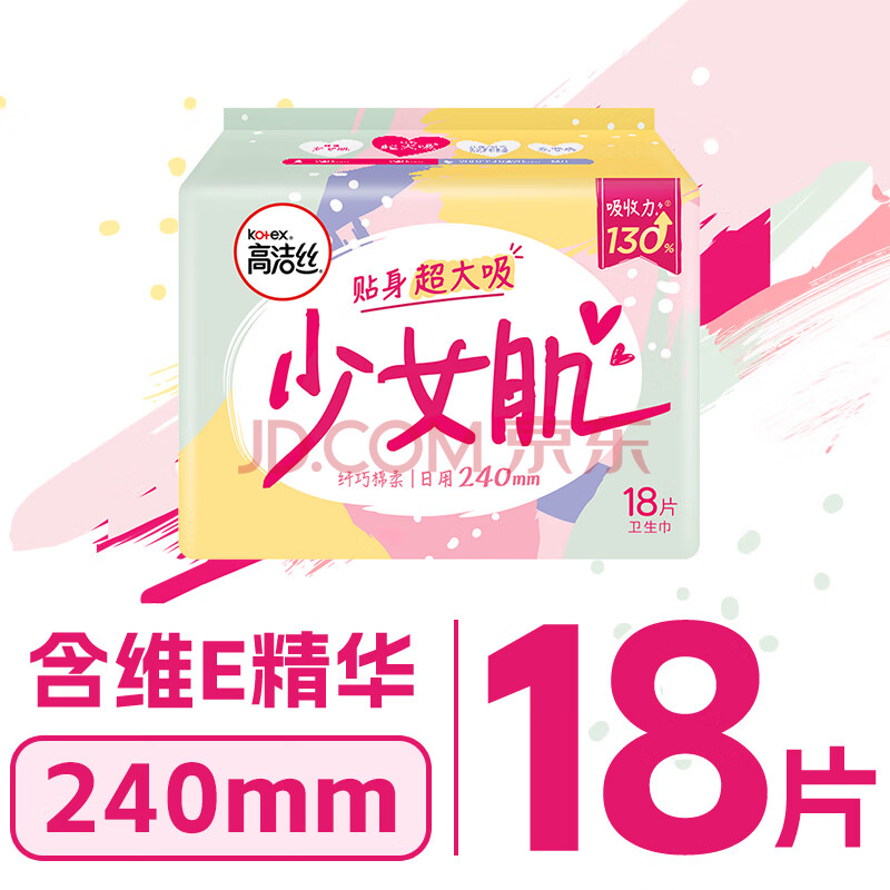 商品相册:高洁丝【柔滑呵护】少女肌卫生巾240mm18片日用姨妈巾京东自营官方旗舰第