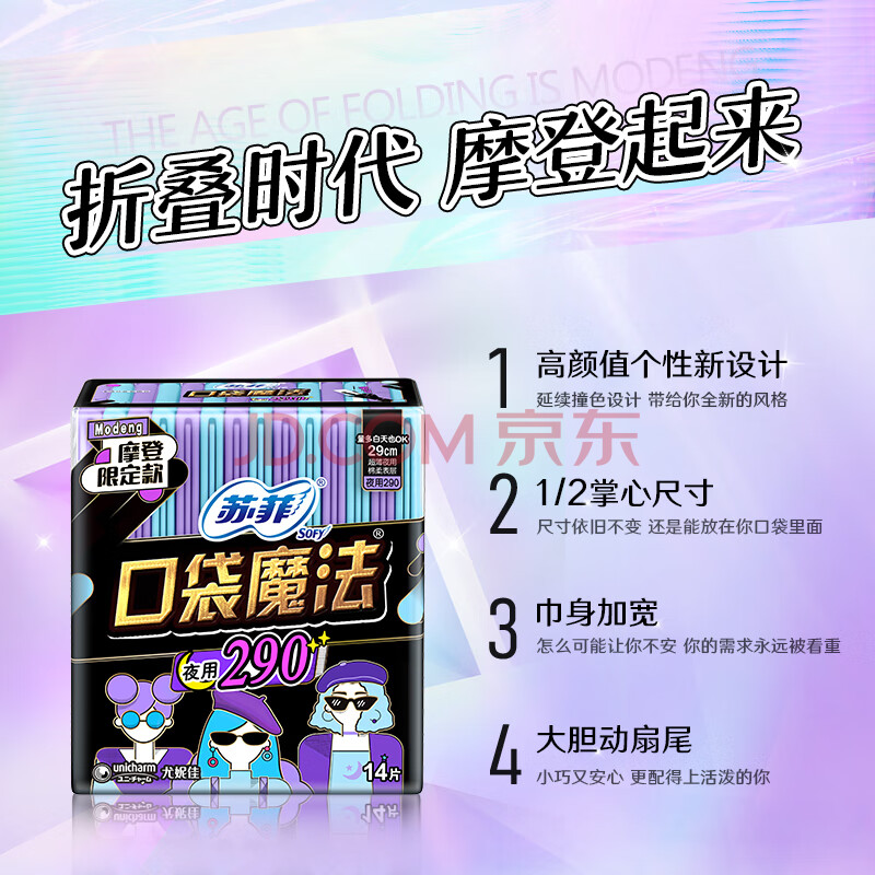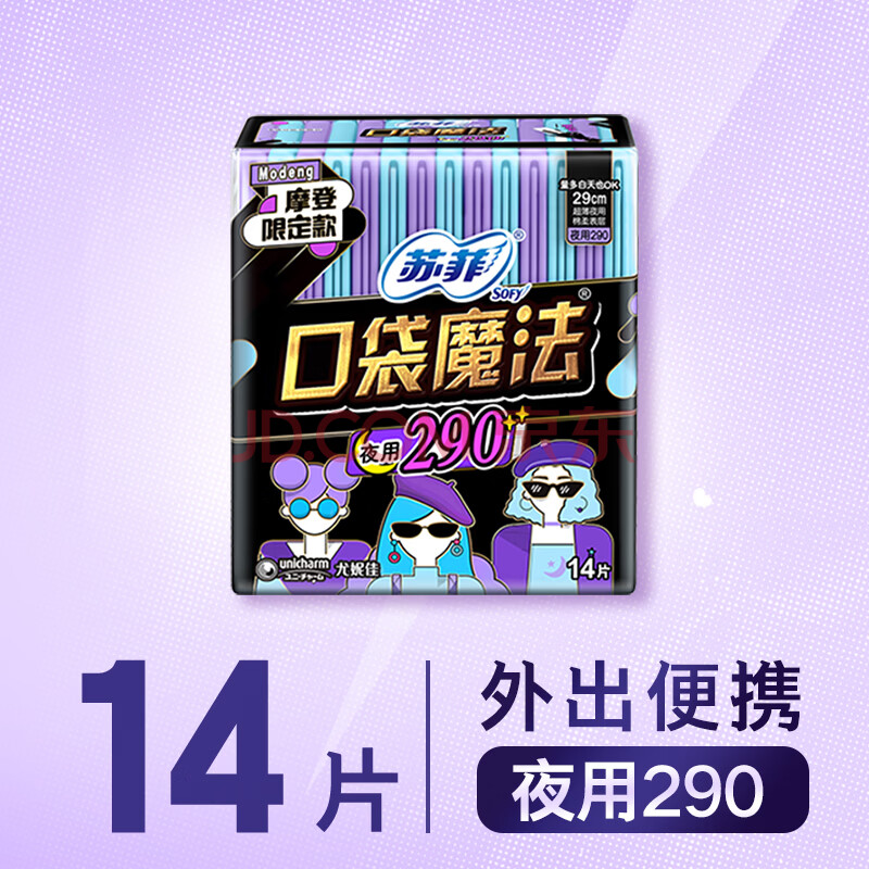 商品相册:苏菲口袋魔法量多日夜用卫生巾29cm14片便携超薄姨妈巾自营官方旗舰第