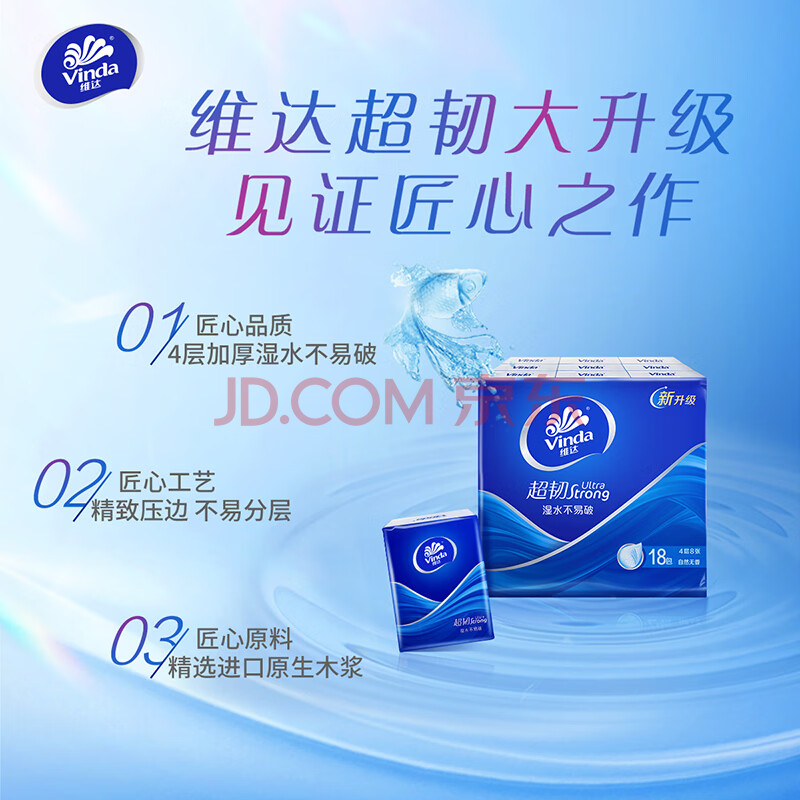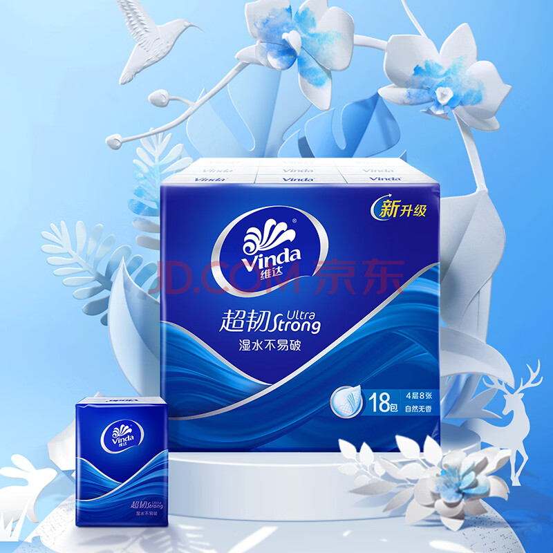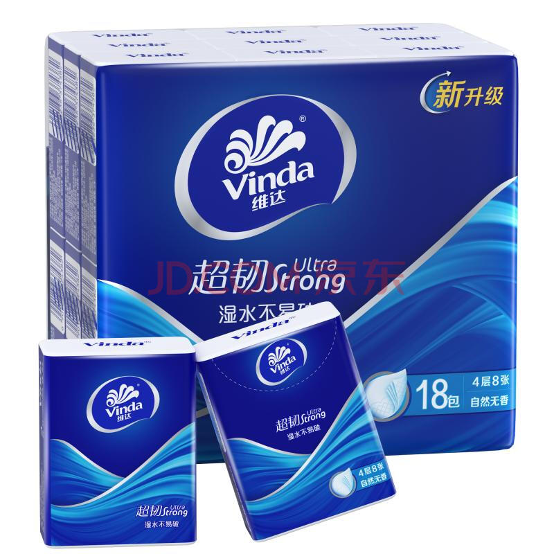 商品相册:维达(Vinda)超韧手帕纸4层8片18包 出行必备 热销爆款大尺寸 无香便携装小包第
