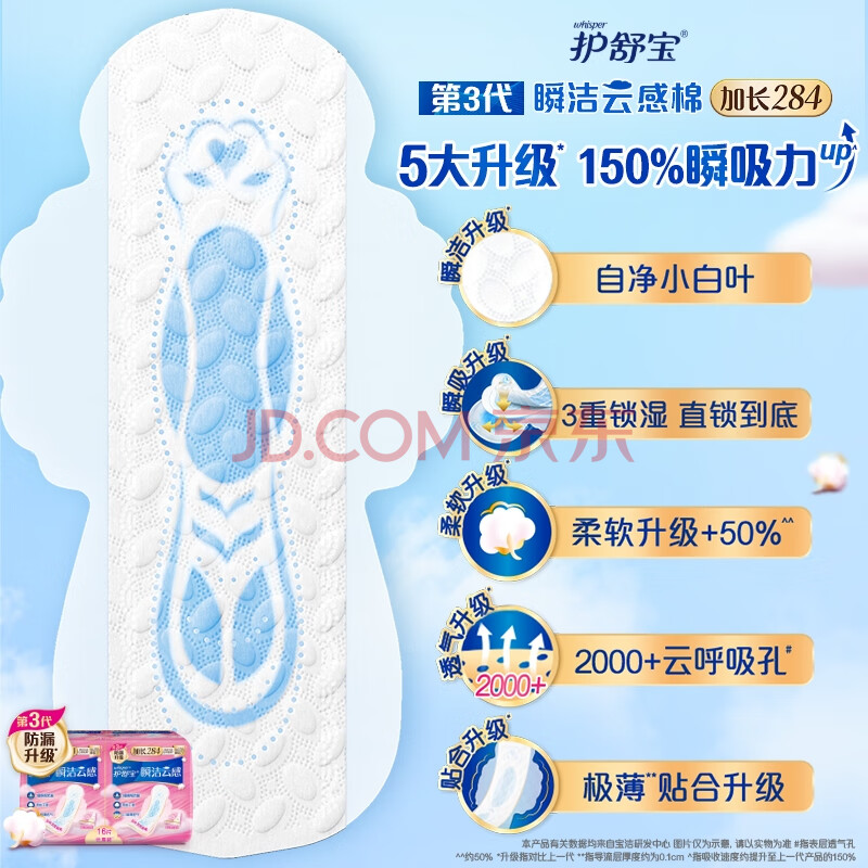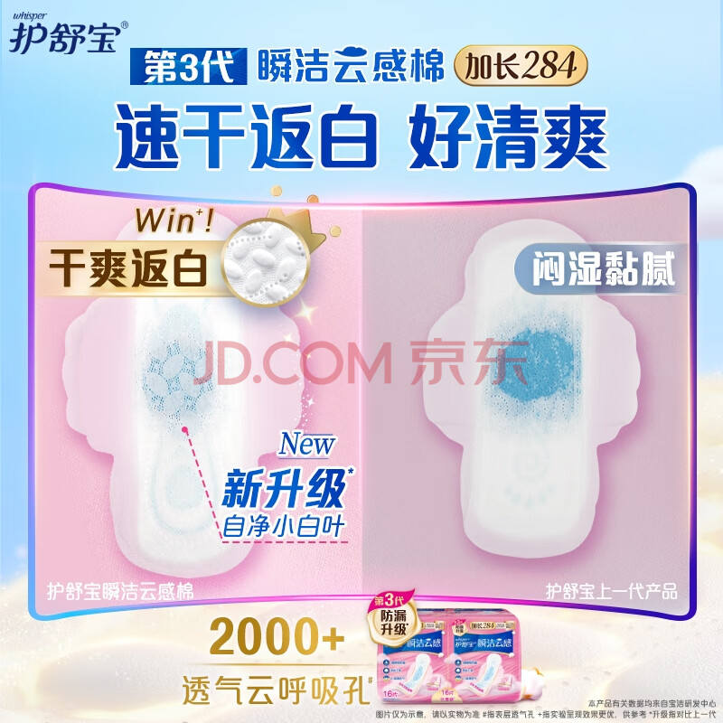 商品相册:护舒宝革新瞬洁云感棉卫生巾量多日用284mm16片姨妈巾京东自营官方旗舰第