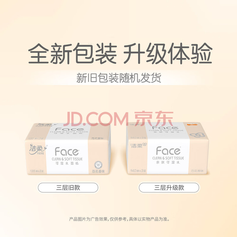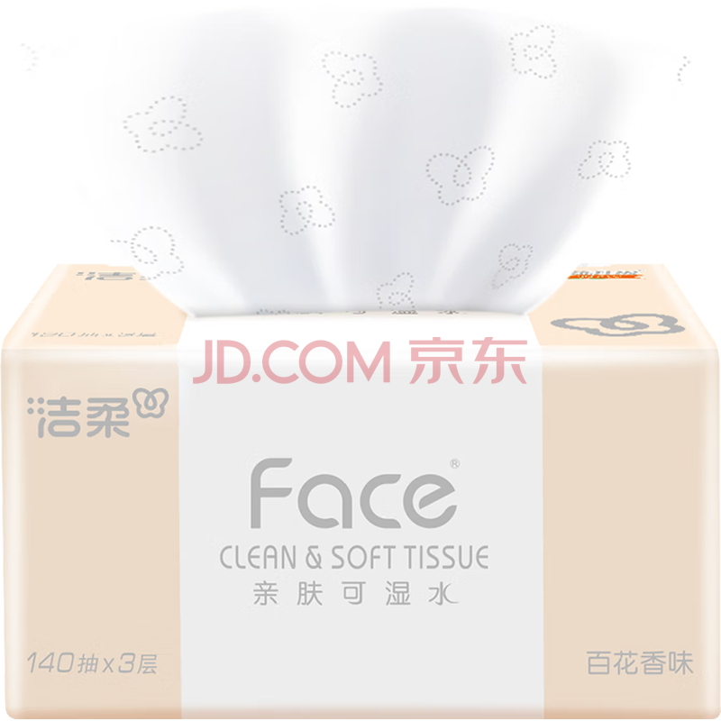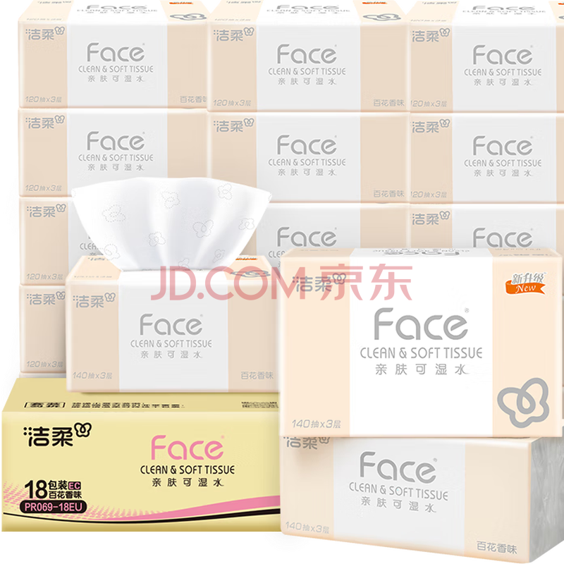 商品相册:洁柔抽纸 粉Face柔韧3层140抽*18包 面巾纸 百花香味纸巾 整箱卫生纸第