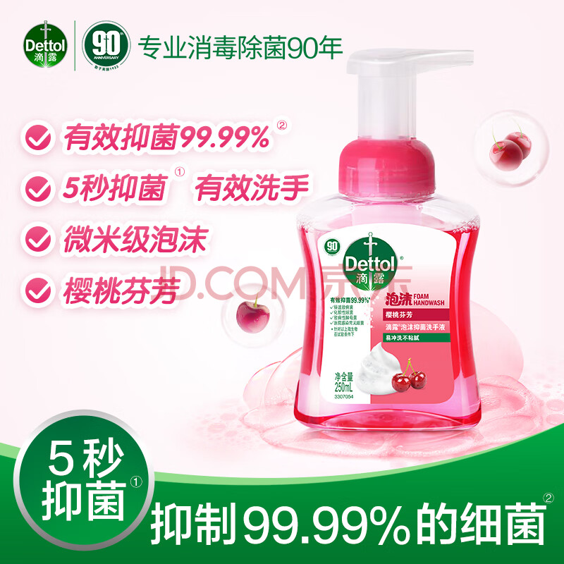 商品相册:滴露(Dettol)泡沫洗手液樱桃250ml 99.99%抑菌杀菌消毒泡泡型儿童大人通用第