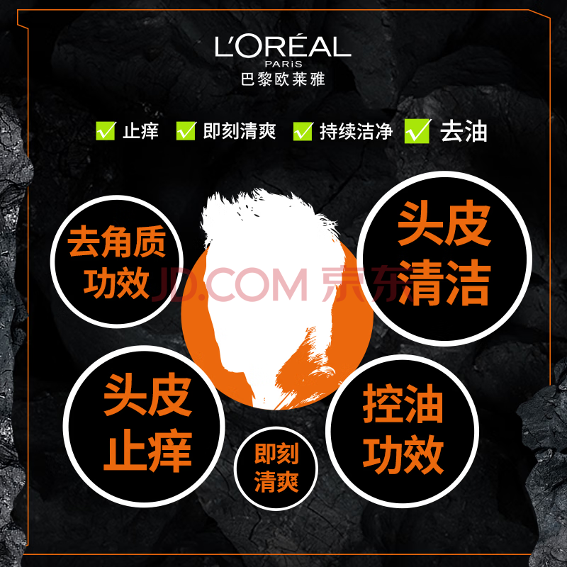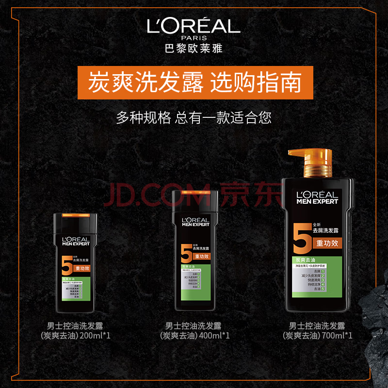 商品相册:欧莱雅(LOREAL)男士洗发水去屑洗发露(炭爽去油)400ml(新老包装随机发货)第