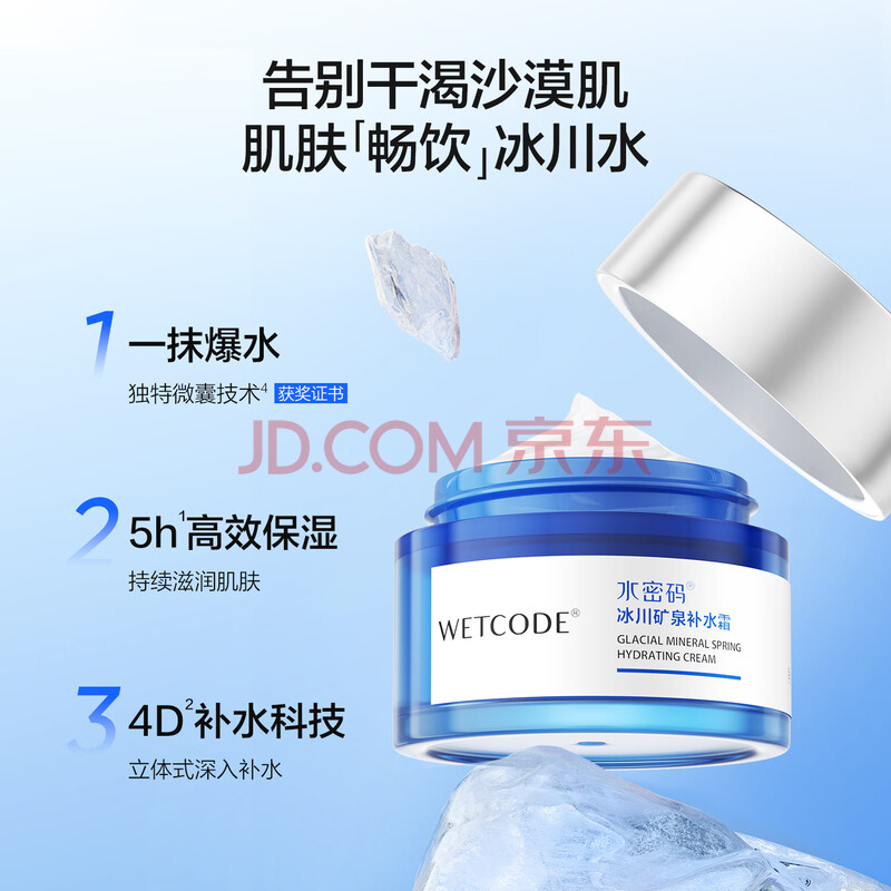 商品相册:水密码冰川矿泉补水面霜50g男女士通用水润保湿清爽不油腻第