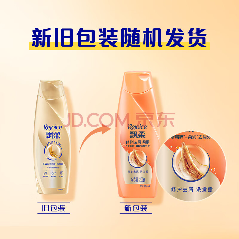 商品相册:飘柔人参修护去屑洗发水男士女士洗发露液洗头膏200g修护损伤柔顺第