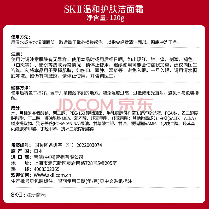 商品相册:SK-II女士温和洁面120g氨基酸洗面奶sk2化妆护肤品套装生日礼物女第