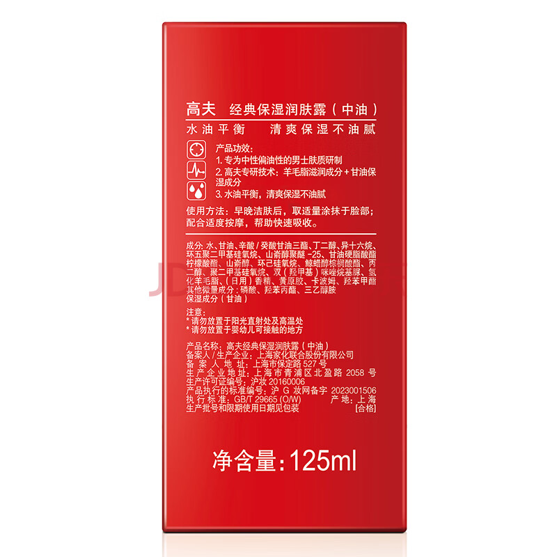 商品相册:高夫经典保湿男士护肤品乳液润肤露125ml水油平衡(适用中-油性肤质)第1张/共4