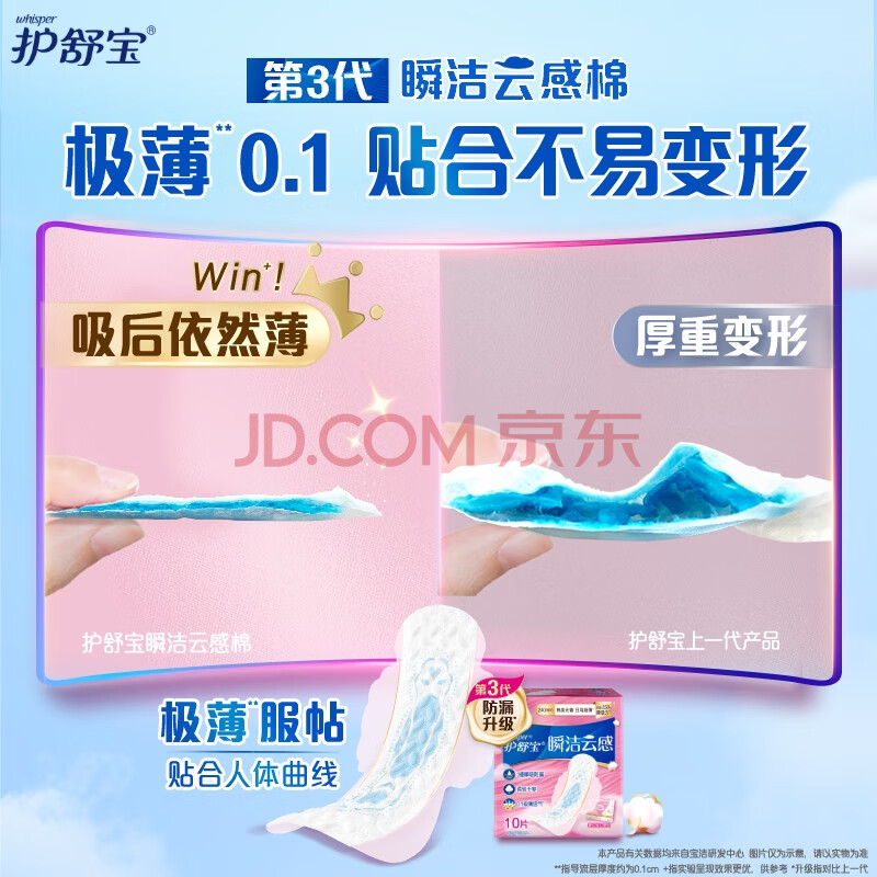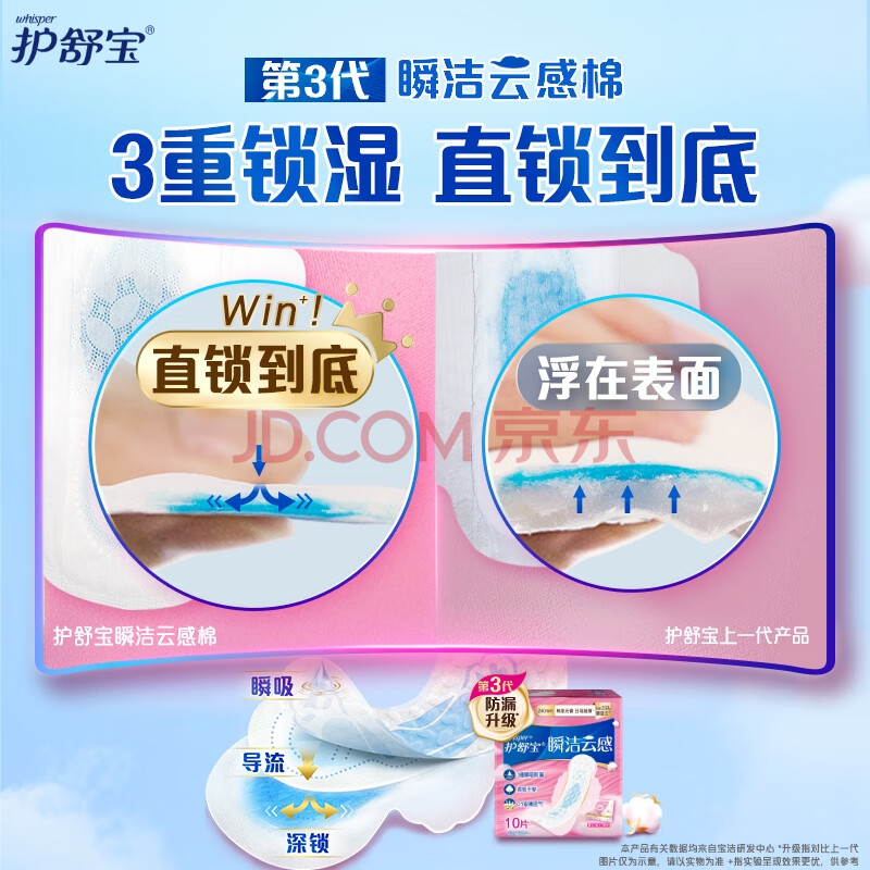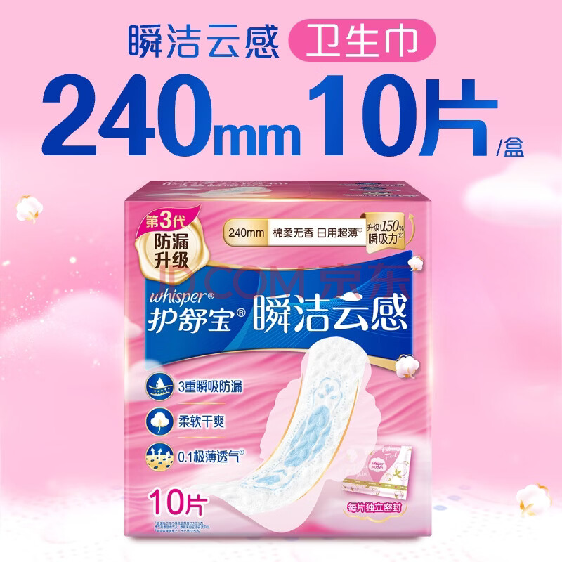 商品相册:护舒宝革新瞬洁云感棉卫生巾日用240mm10片姨妈巾京东自营官方旗舰第