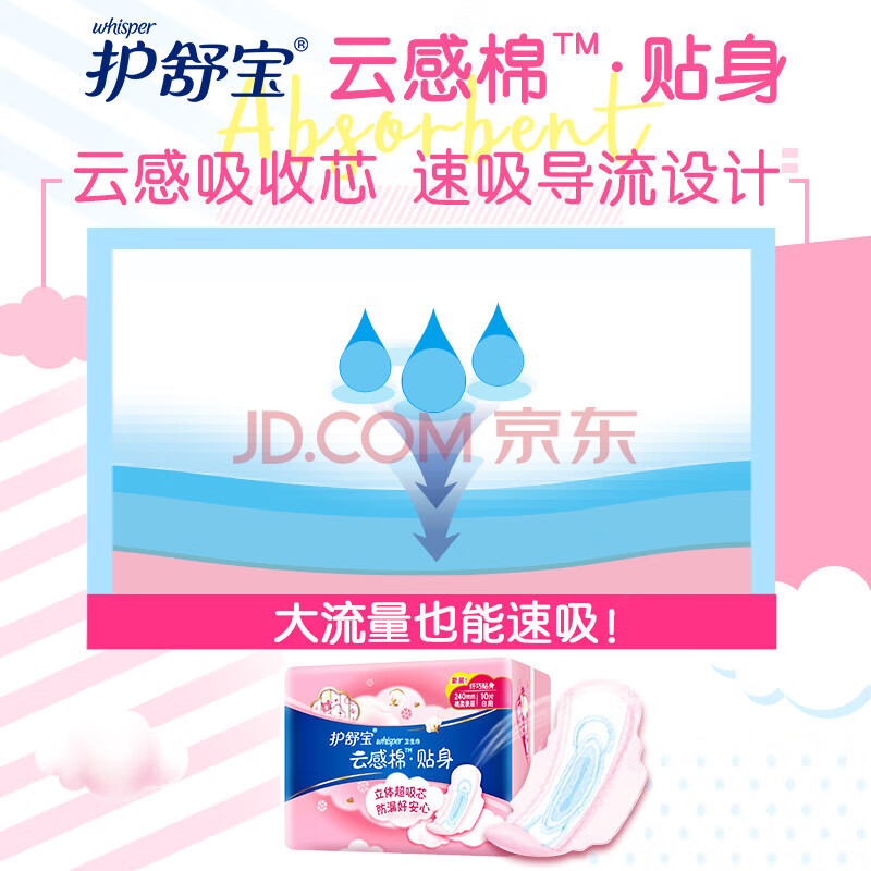 商品相册:护舒宝贴身云感棉卫生巾日用240mm10片姨妈巾干爽透气京东自营官方旗舰第