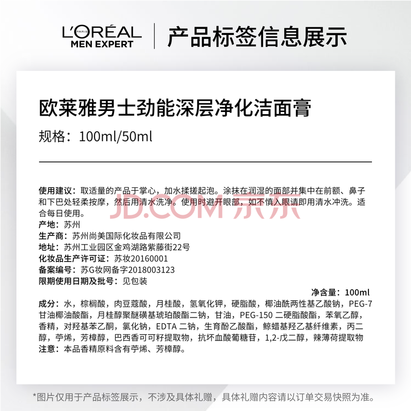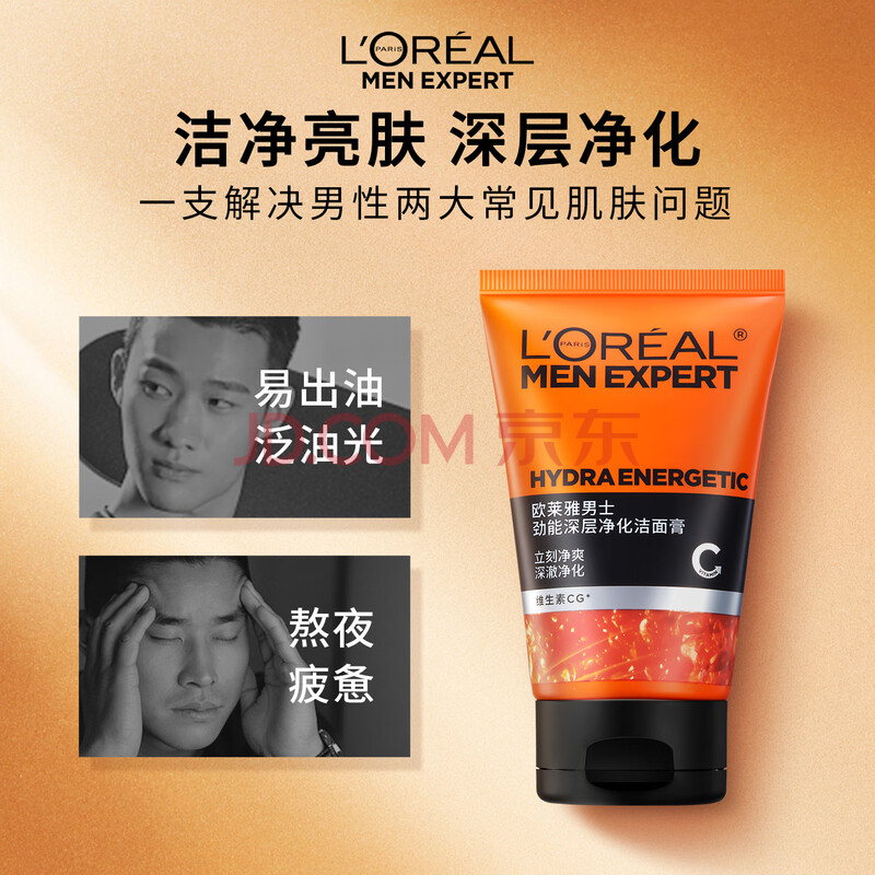 商品相册:欧莱雅男士专用洗面奶100ml劲能洁面保湿去角质护肤品生日礼物送男友第