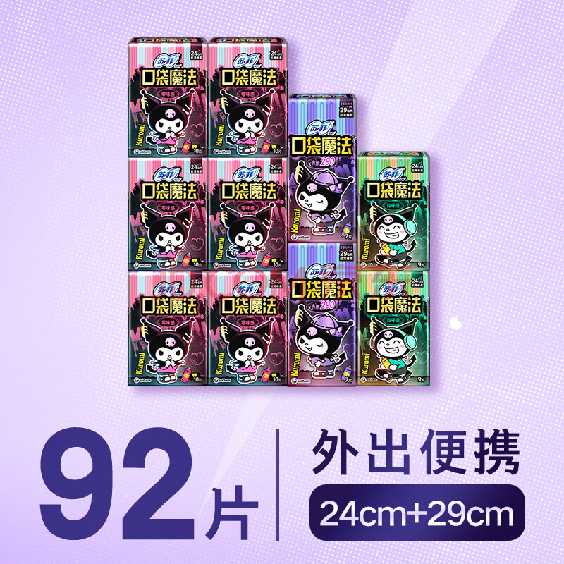 商品相册:苏菲口袋魔法卫生巾日夜组合92片超薄便携干爽加宽姨妈巾自营官方旗舰第