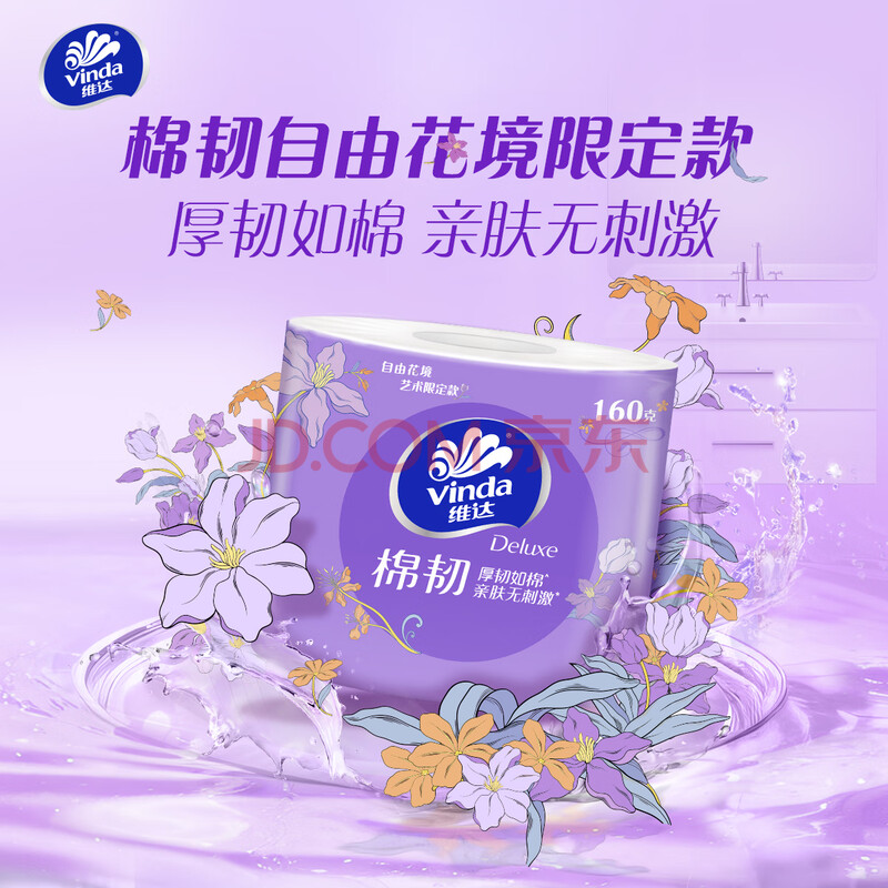 商品相册:维达(Vinda)有芯卷纸 棉韧4层160克*27卷 卫生纸 厚韧耐用 新旧随机发货第