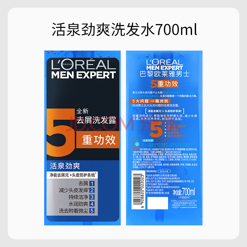 商品相册:欧莱雅男士洗发水去屑洗发露(活泉劲爽) 700ml(新老包装随机发货)第