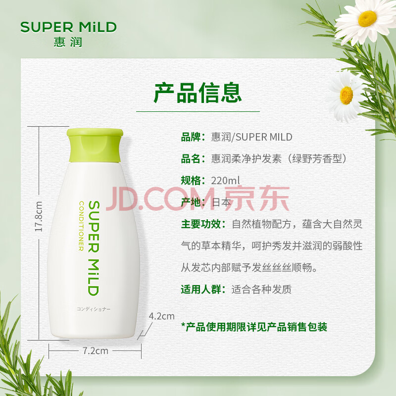 商品相册:惠润(SUPER MiLD)肌底绿野芳香护发素女220ml旅行装润发乳滋润柔顺保湿第