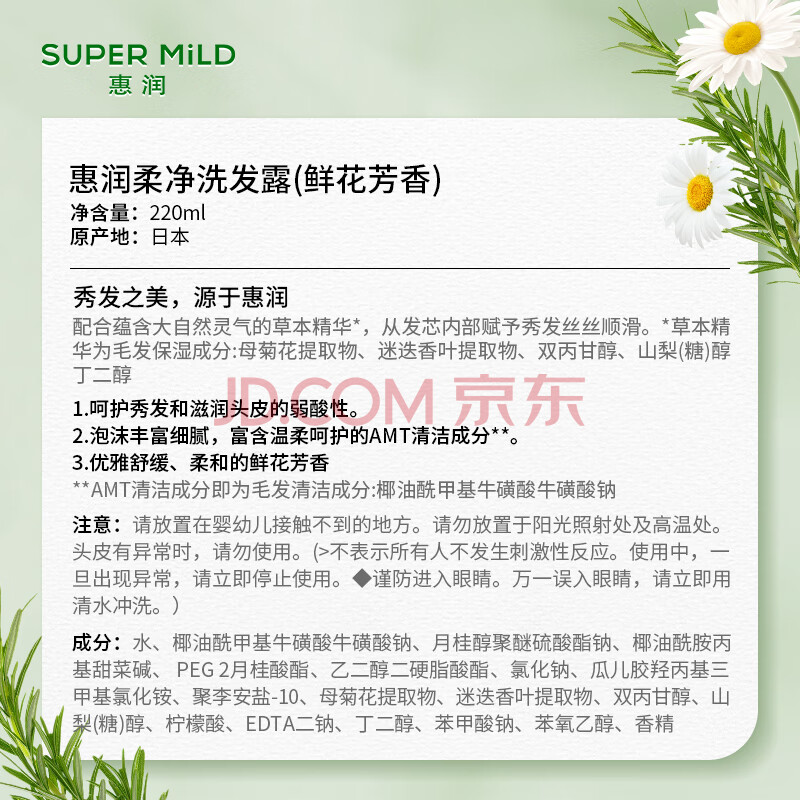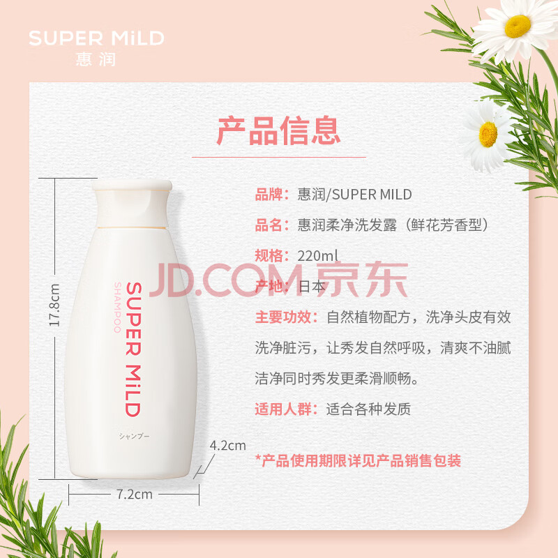 商品相册:惠润(SUPER MiLD)鲜花芳香洗发露220ml旅行装男女柔顺蓬松洗发水第