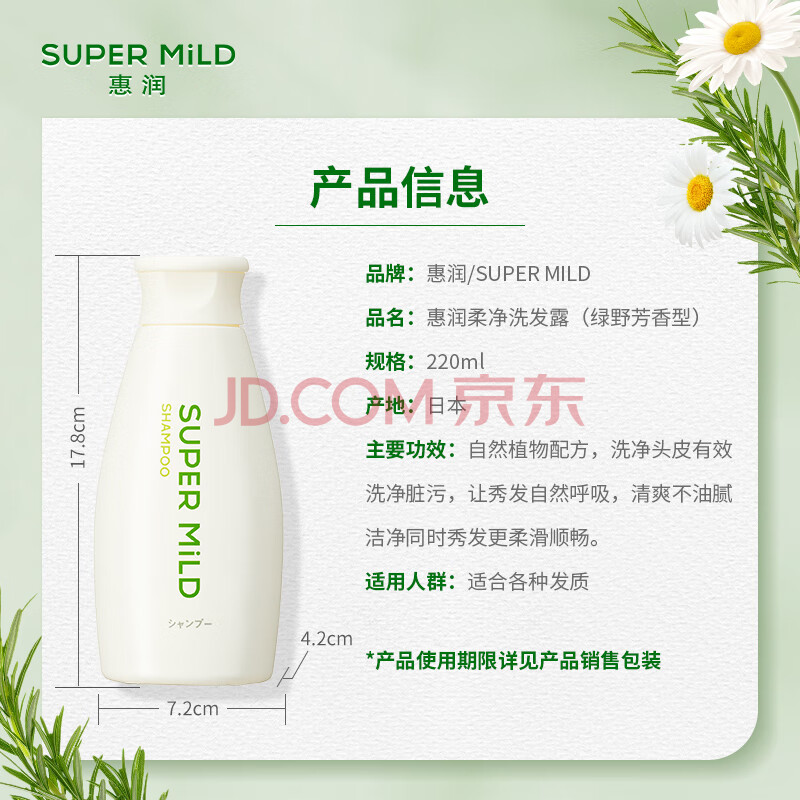 商品相册:惠润(SUPER MiLD)绿野洗发露220ml旅行装柔顺蓬松洗发水京东自营第