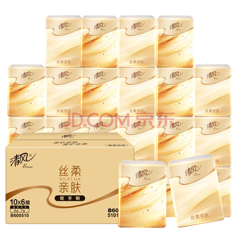 商品相册:清风丝柔无香手帕纸4层7张*60包 纸巾小包便携装 箱装 大尺寸第