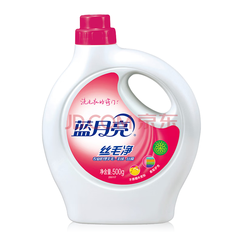 商品相册:蓝月亮丝毛净淡雅花香500g瓶 不易缩水变形 专业护理羊毛羊绒真丝洗涤剂第1张/共8