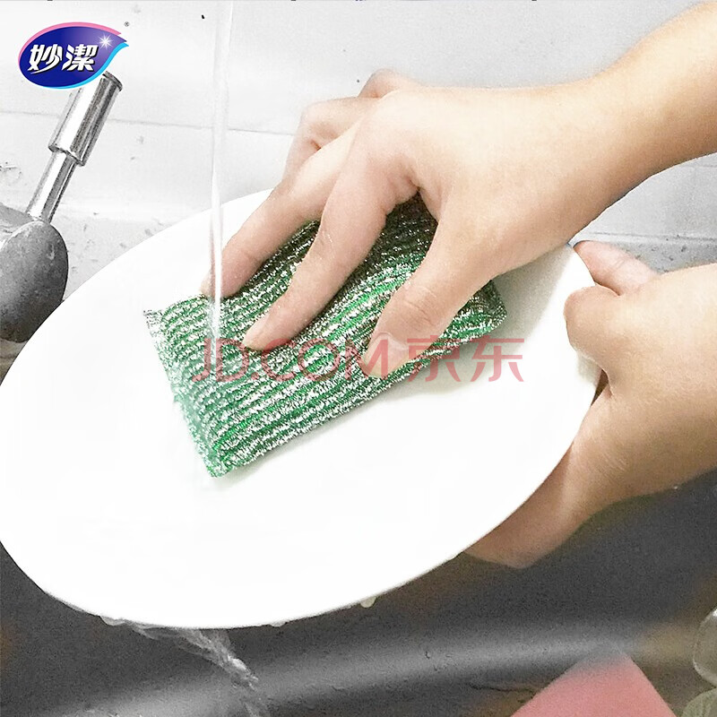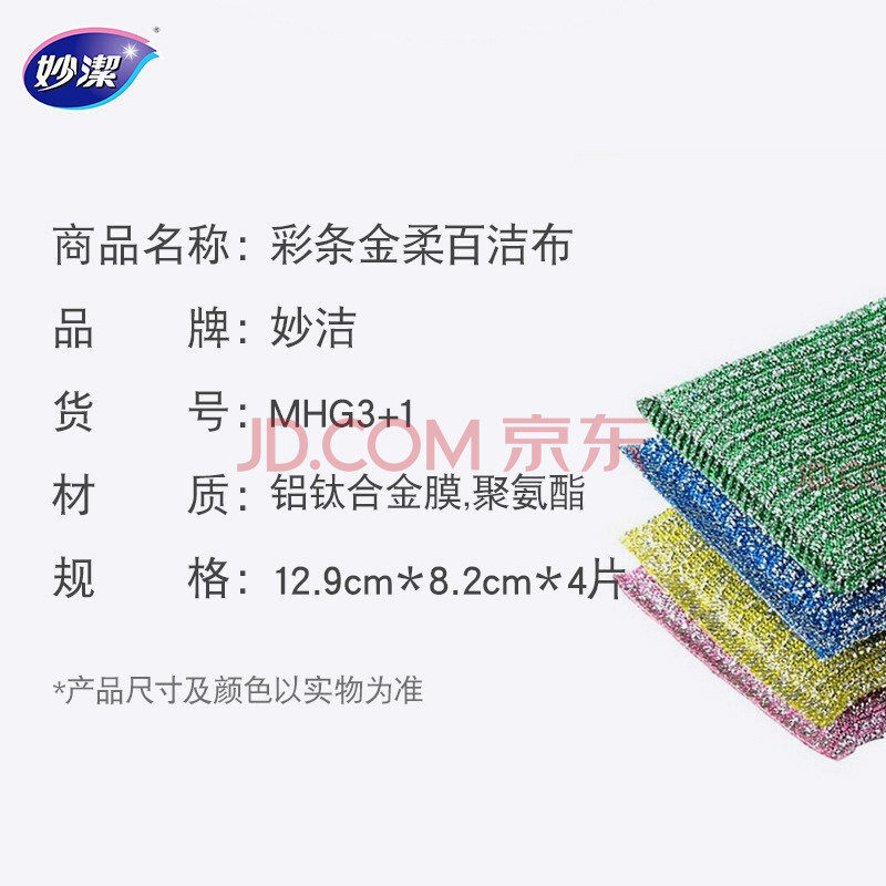 商品相册:妙洁彩条金柔百洁布4片洗碗海绵擦刷锅神器类钢丝球厨房丝瓜络瓤第1张/共4