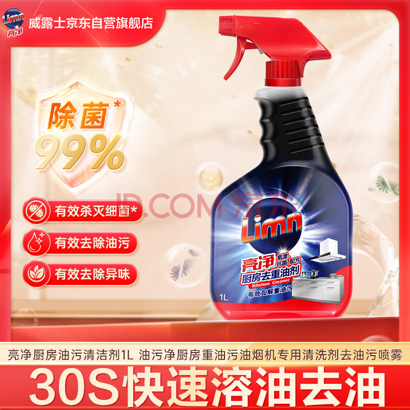 商品相册:亮净厨房油污清洁剂1L 油污净厨房重油污油烟机专用清洗剂去油污喷雾第1张/共6
