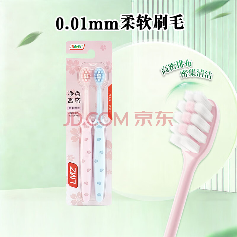 商品相册:两面针(LMZ)成人软毛牙刷 细毛护齿 1卡2支装 0.01mm柔软刷毛 第