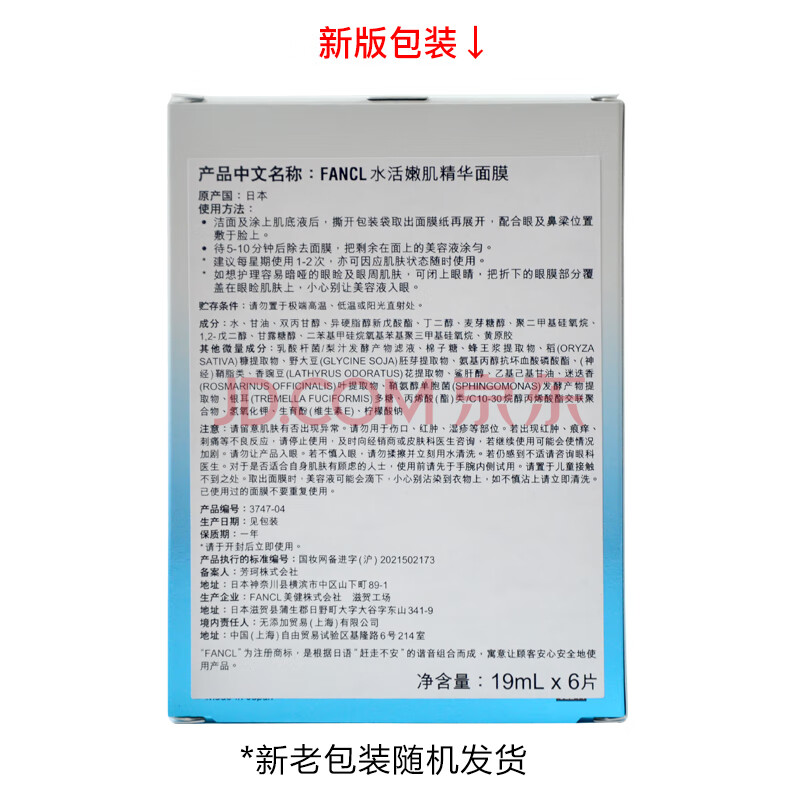 商品相册:芳珂(FANCL)水活嫩肌精华面膜19ml*6片 保湿 护肤品 生日礼物送女友第