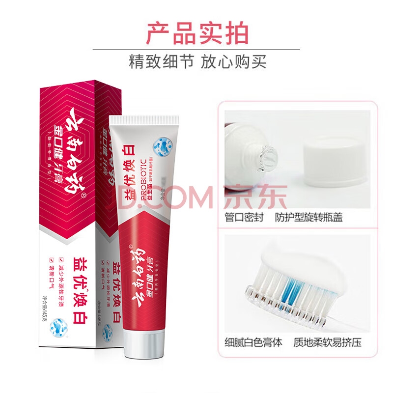 商品相册:云南白药益生菌系列亮白牙膏 清新口气 祛渍焕白洁净口腔牙膏105g第