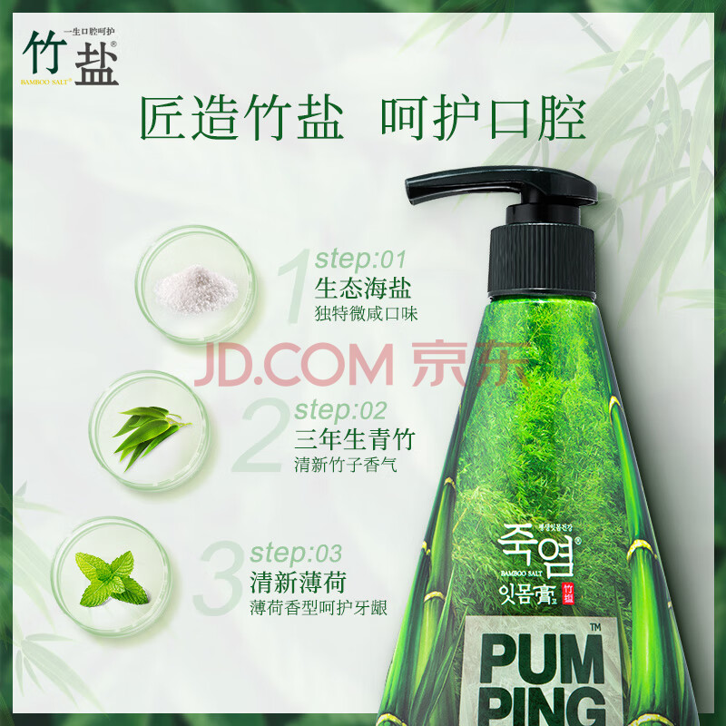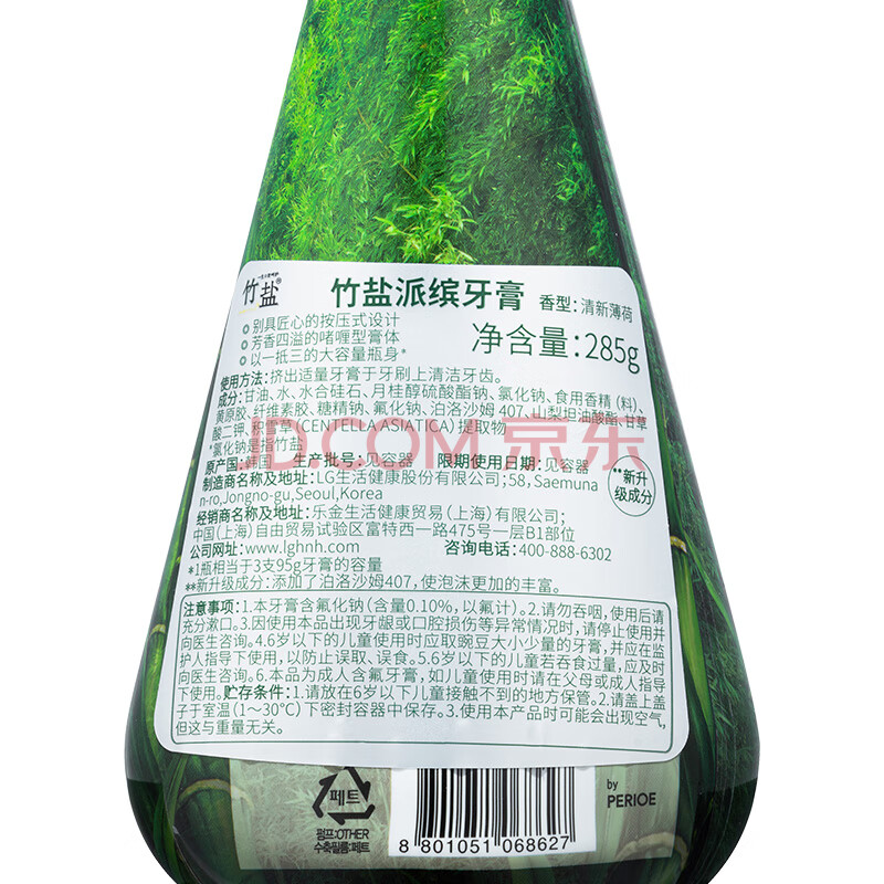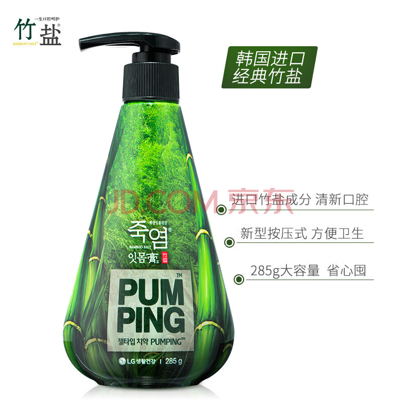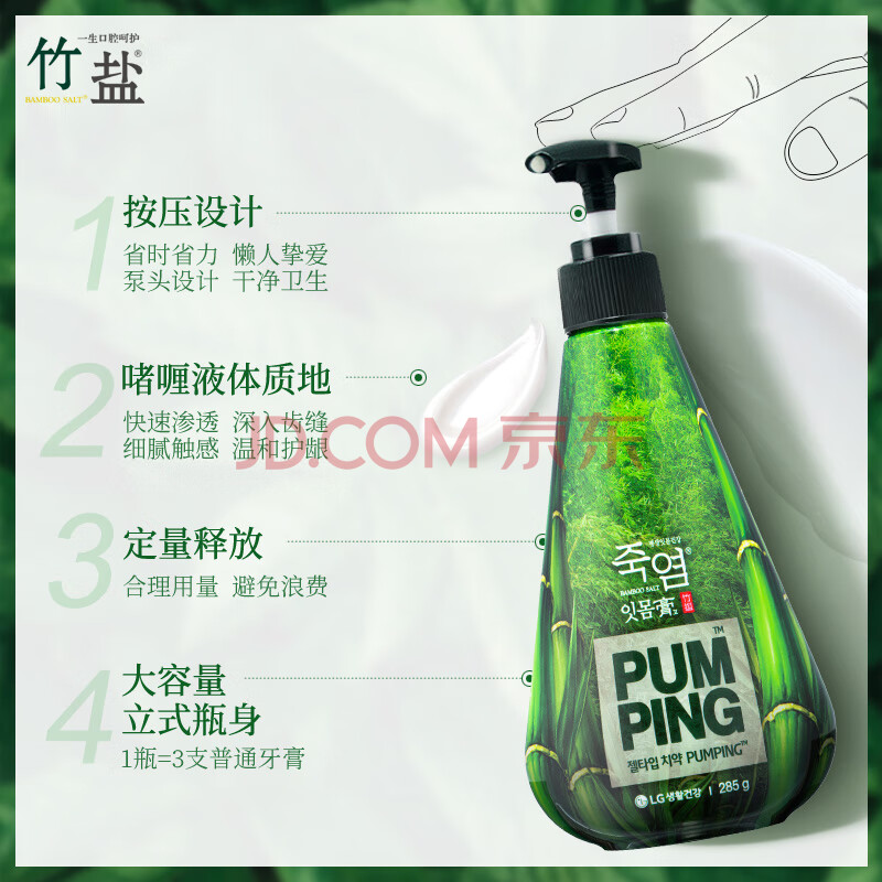 商品相册:竹盐LG派缤按压式牙膏285g*1瓶清新薄荷清爽口感减轻牙渍清洁口腔第